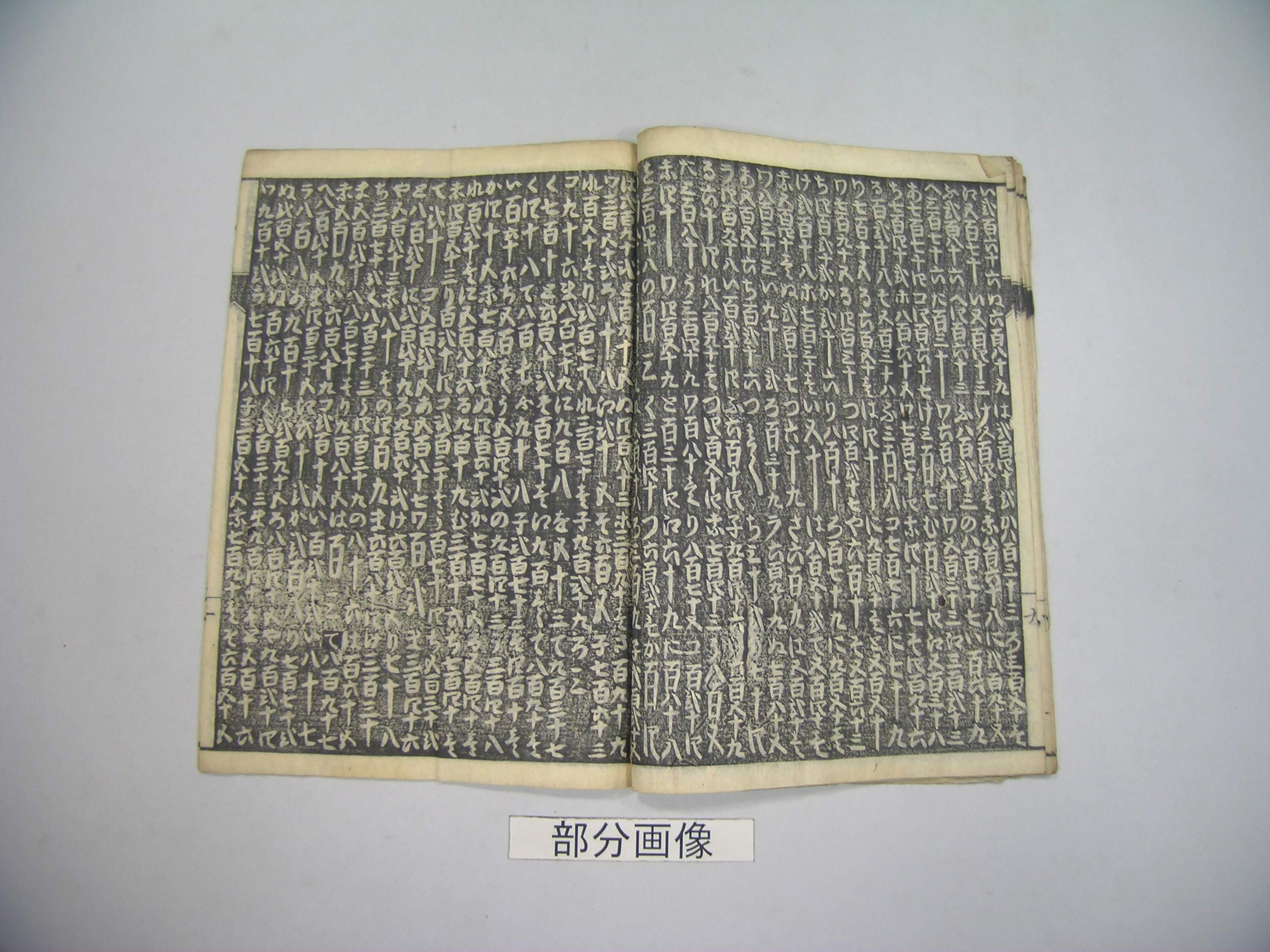 | いろはと1000までの数字を組合わせた番号表で初鬮(1番札)から2702本目までを列記。何かの興行の結果とみられるが、年次とともに不明。すべて陰刻で6、16、66、1066、1071、1076、1126、2126、2131、2136本目を白抜記事で注記し、最後に2701、2702本目を大書して終る。 | |